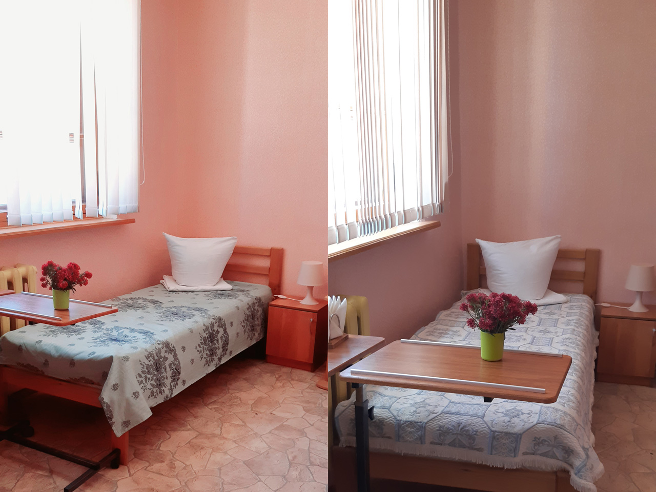 При поступлении в дом престарелых в Каховке, каждый пенсионер может выбрать для себя 1,2, или 3-х местную комнату. Каждая комната оборудована душем, санузлом, и необходимой мебелью. Кровати и мебель, которые располагаются в комнатах постояльцев, разработаны специально для людей преклонного возраста и инвалидов, что позволяет обеспечить самый высокий уровень комфорта.